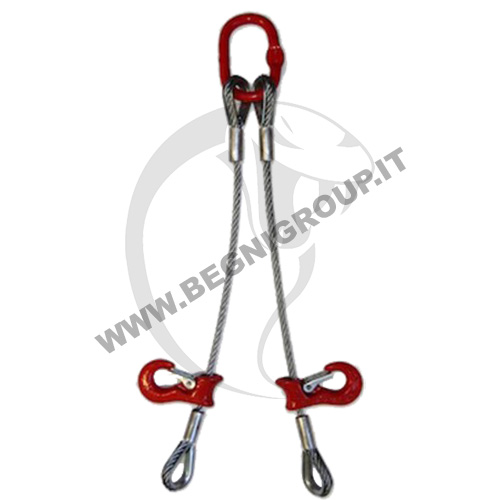 1 August 2024Begni Group assembles slings in galvanized steel wire rope with 1 and 2 strands textile core with masterlink, thimbles and sliding slip hooks, for use in chole mode.