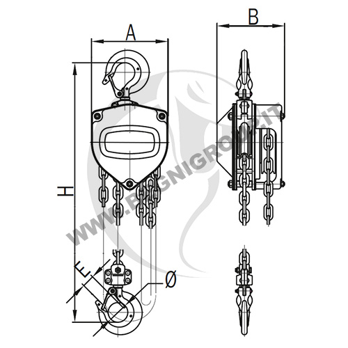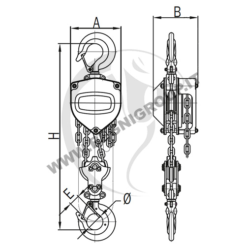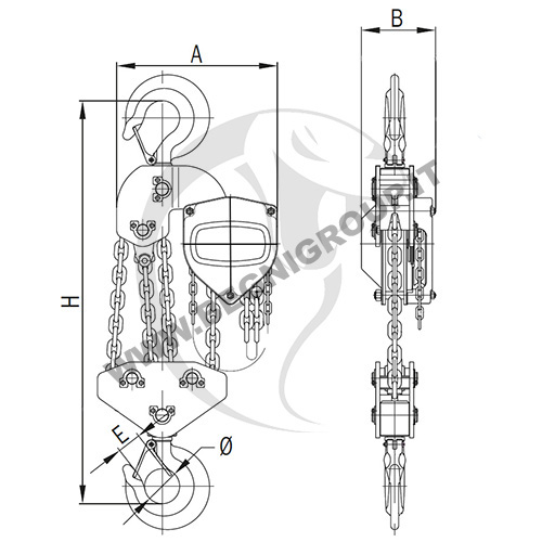 ■ Possibilità di personalizzazione: i paranchi possono essere personalizzati con lunghezze specifiche sia della catena di portata sia della catena di manovra.