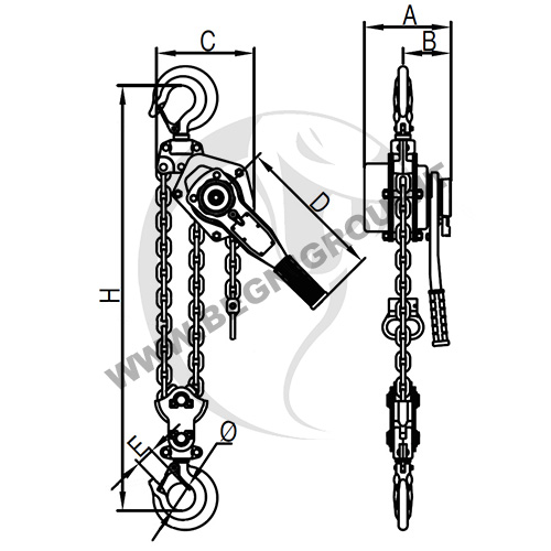 ■ Possibilità di personalizzazione: i paranchi possono essere personalizzati con lunghezze specifiche della catena di portata.